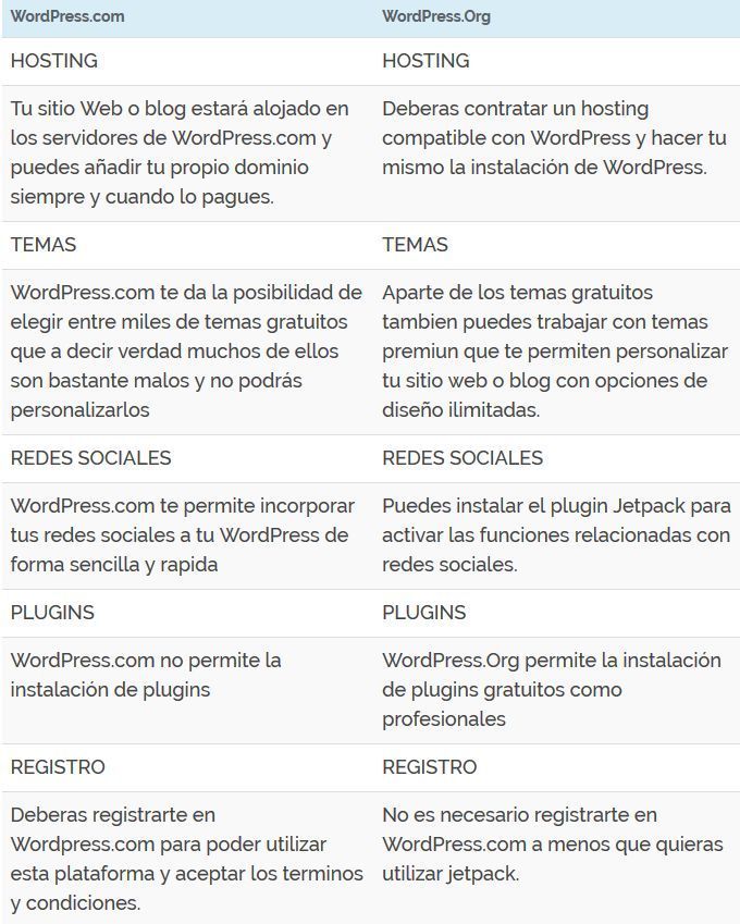 Cuales son las diferencias reales entre WordPress.com y WordPress.org