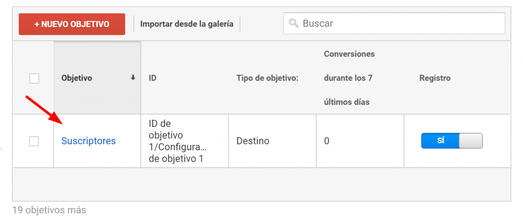 Haz clic en Nuevo Objetivo para comenzar a configurar las conversiones.