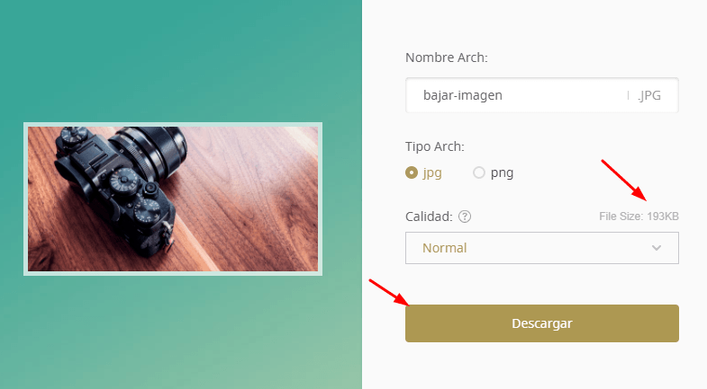 Modifica el nombre del archivo y selecciona la calidad de la imagen.