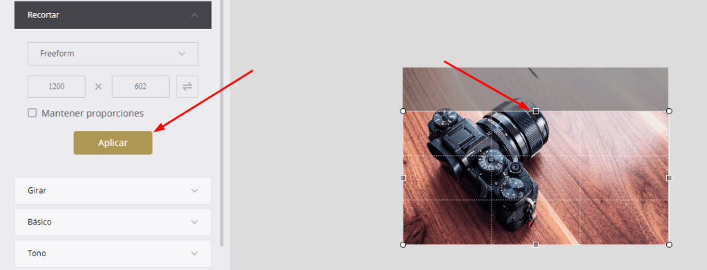 En caso de que quieras recortar la imagen, haz clic en recortar.