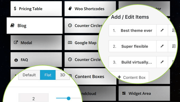 Aqui podrás personalidad cada uno de los elementos del Fusion Builder al cual hare mencion un poco más adelante en esta Review de Avada Theme.