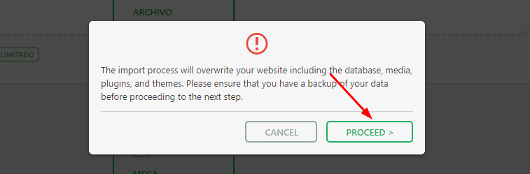 Una vez finalizada la instalación deberás ingresar a tu panel de administración (nueva instalación) e instalar All-in-one migration. Una vez instalado debes hacer clic en All In One Migration y seleccionar la opción Importar.