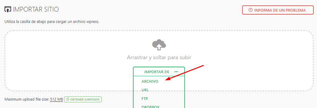 El plugin gratuito tiene una limitación de 512 MB, en caso de que tu copia de seguridad pese más que eso, deberás comprar la extensión del plugin.